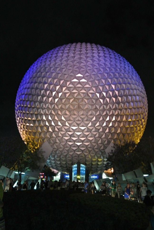 帰り道がてら、夜のスペースシップアースのライトアップをパシャリ☆