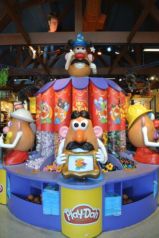 こちらはおもちゃ屋さん。パーツがいろいろあって、好きな顔のポテトヘッドがつくれます☆