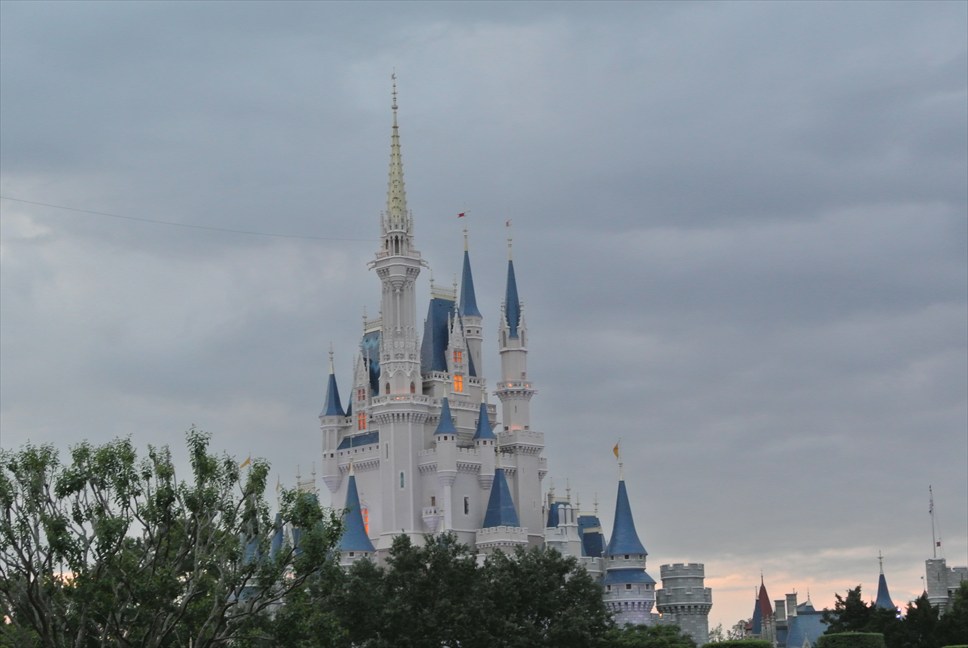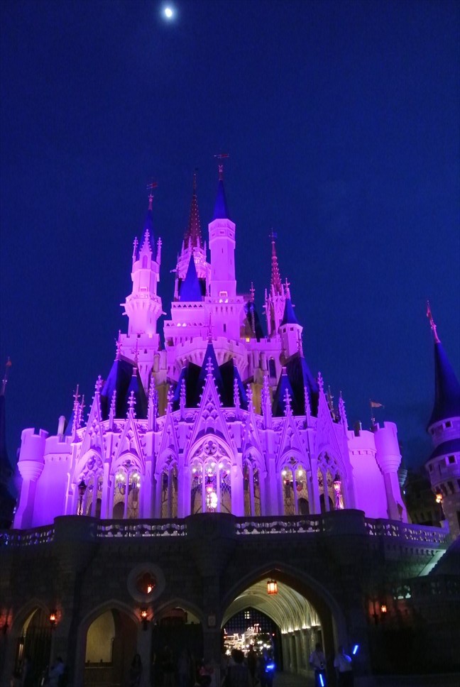 21時すぎ。流石に暗いです。裏から見たシンデレラ城も綺麗ー!