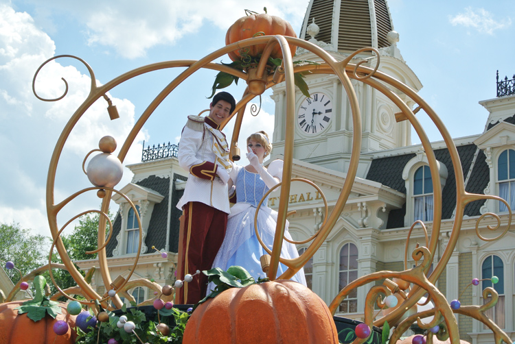 その次はシンデレラとチャーミング王子の、カボチャの馬車のフロート。