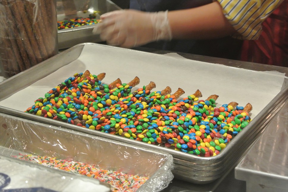 再度コーティング→飾りや模様のチョコ・砂糖をかける→完・成☆・・・・甘ッッッッ!!!