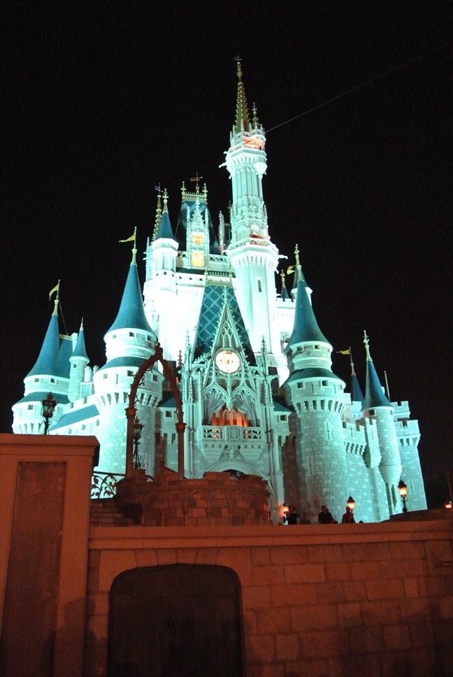 21時すぎ。流石に暗いです。裏から見たシンデレラ城も綺麗ー!